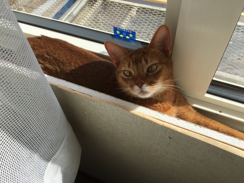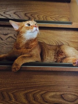 アビシニアンのメスです。3歳ですが、生まれつき身体が小さく、子猫?と勘違いされることも多いです。瘦せ型で、あまり鳴きません。