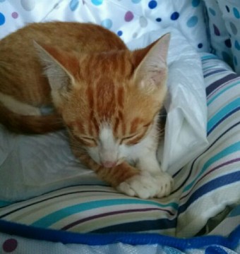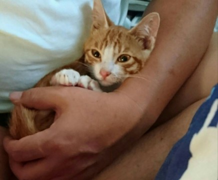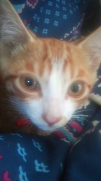 左手が白く、右手が茶トラ柄なのが特徴です。