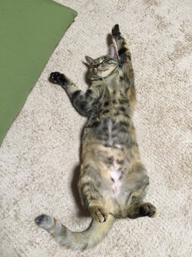 一見キジトラ風ですが、お尻の方は茶色の毛が多くなってます。