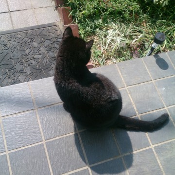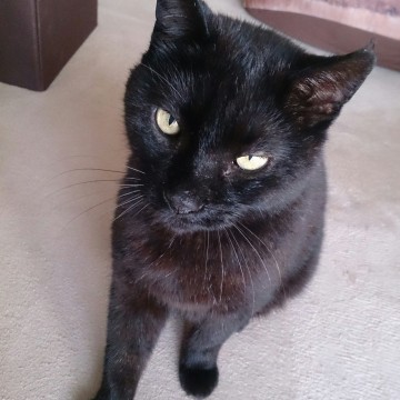 真っ黒、首輪無し、人になついている、キバは抜け落ちている
