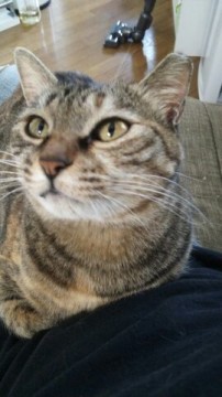 背中は黒茶サビっぽく 正面から見るとキジトラっぽいメス猫