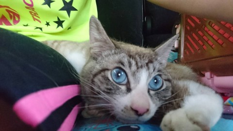 ブルーの瞳、白ソックス、カギしっぽ、人懐こい