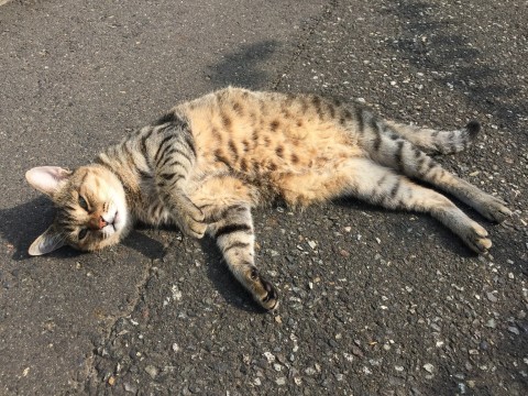 口の周りは白く、お腹は薄茶色、肉球は全て黒、鳴き声は可愛い声です。