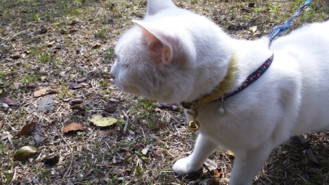 尻尾の先が少し切れていて、耳が聞こえないので、性格は臆病な方です。