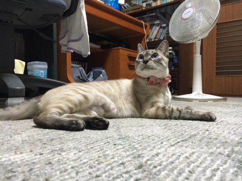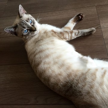 キジトラとシャム猫の雑種で、3キロぐらいで体はそんなに大きくありません。