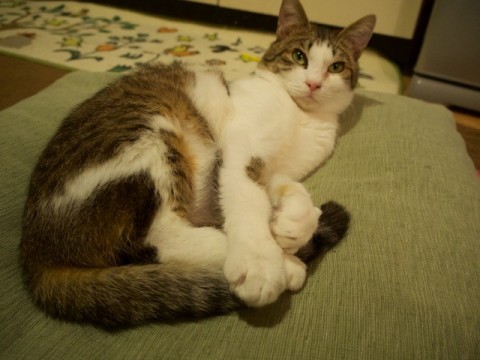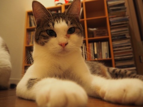 保護猫で、5ヶ月くらいの頃に保護しましたが、その時も後をついてきて離れず、うちの猫になったのでした。(保護当時は、ノミだらけ、目は目やにでふさがってガリガリに痩せていましたが、人慣れしていて、そこまで汚れていなかったので、人の手で育てられた後大きくなってきて捨てられたのかな?と推測しています)