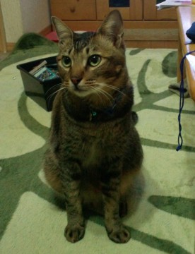 いなくなった時に水色の鈴付きの首輪しています。