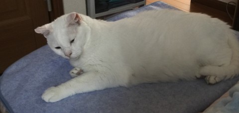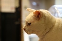 両耳の先端が曲がっています。首輪をつけていた部分の毛がはげています。