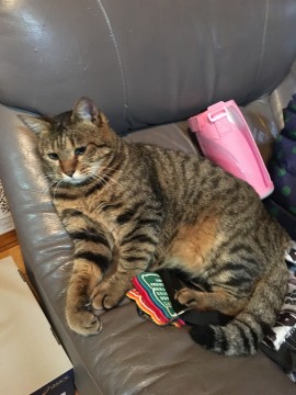 少し小さめですが太っており、よく寝る子です。首輪はつけておりません。とても人懐こくて可愛い子です。