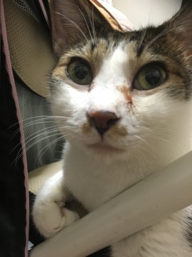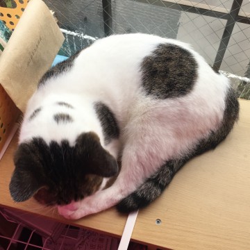 キジ白、シミ付き、去勢済、鼻炎持ち、人懐こい方だと思います。3歳にしては体格は小さめです。首輪なし