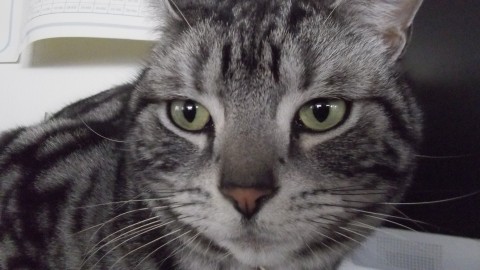 アメリカンショートヘアーで小太り首輪付いてます。
