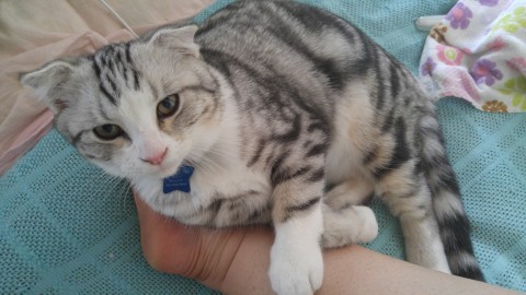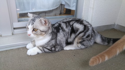 アメショ柄の折れ耳、白黒のうずまき模様の男の子を探しています