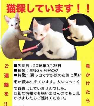 車のボンネットの足跡が途中でなくなっていたので拾われた可能性が高いです。拾われた方、見かけた方ご連絡ください。