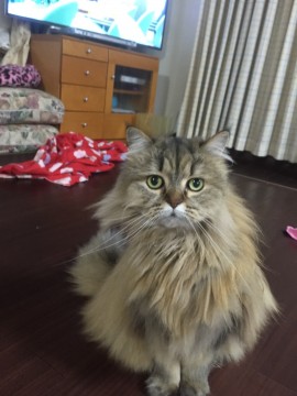 濃淡の茶色 艶のない長く柔らかい毛 (周辺の環境や雨でひどい毛玉になって 外見が異なって見える可能性大です。)