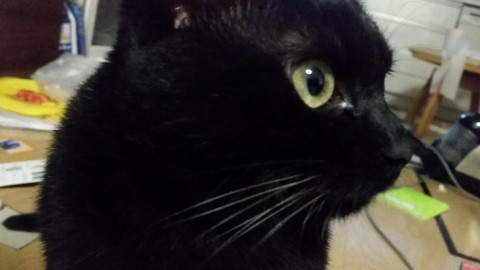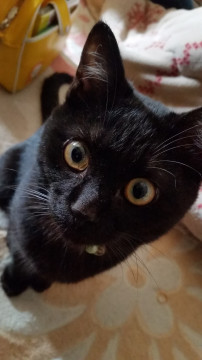 黒猫ですが、耳の中は白い毛です。体長は40センチほど。