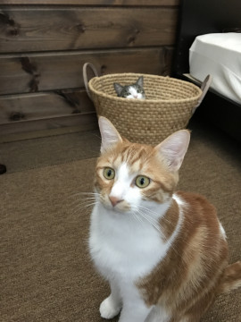 ホコリまみれになっているだけでケガもなく無事ですが、違うニオイがするせいか今度はきょうだい猫の威嚇が・・・