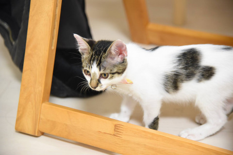 お腹のあたりにミッキーマウスのようなブチ柄があります。