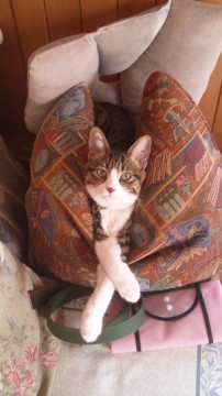 ・特徴/黒茶きじとら 人懐っこいが捕まえようとすると逃げる/オス(去勢済)/しっぽはカギ尻尾/黒茶の首輪で黒の鈴