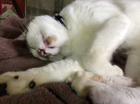 猫同士に感染する陽性の白血病を持っていますので、万が一見つけて保護して頂いた場合ご自身の猫には近づけないようお願いします。