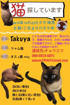 上板橋の近くに住んでいますので、もし見かけたらどうか連絡をお願いします!