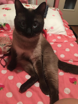 1歳でちょっと太てるシャム猫です。最近寒いし雨も降ってるので、とても心配です。