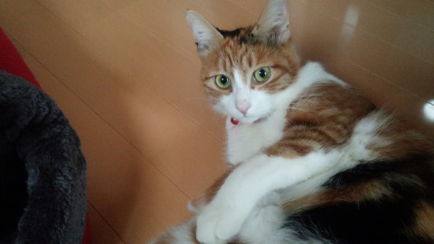 鈴がついた首輪をしており、名前を呼ぶと鳴きます。