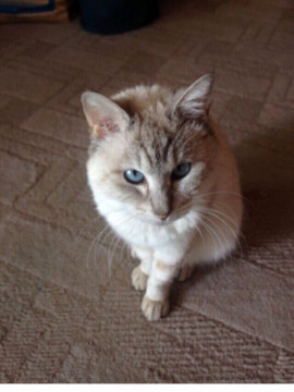 毛の色…白、額に縞模様、手足耳、肉球はこげ茶
