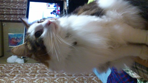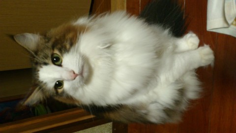 足からお腹顔にかけて白の約5キロあるノルウェージャンフォレストキャットです。