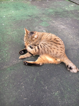 1ヶ月と2週間ぶりにお家に帰ってきました!外に置いてある餌を食べているところを発見!少しだけ痩せてるけど、怪我はないようで安心しました!