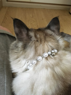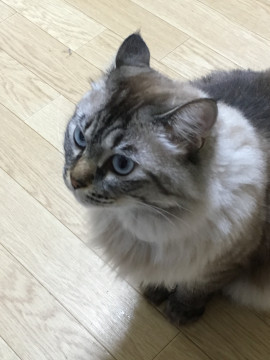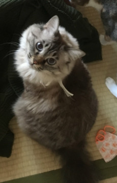 中〜大型猫なのでかなり大きめです。比較的大人しくて臆病です。青い瞳が綺麗です。