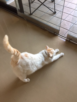 職場でかわいがっておりましたが、里親様が見つかり預けた次の日に脱走しました。職場では外出も自由でしたので遠くに行っているかもしれません。