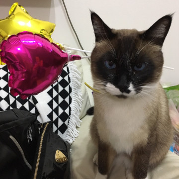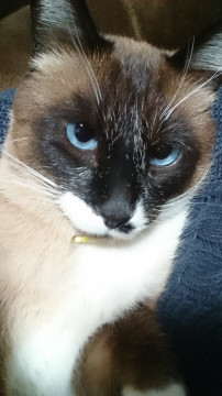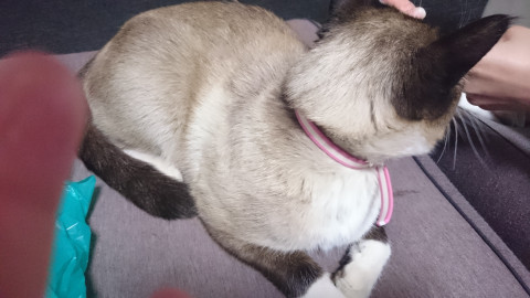 シャム猫!ピンクと黄色のノミ取り首輪!去勢済み