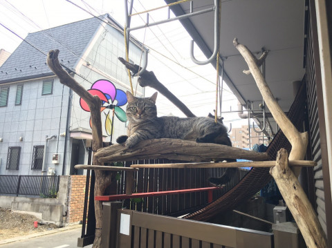 家の敷地内のブロック&流木アスレチックでいつも遊んでいて