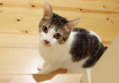 キジ白でカギ尻尾です