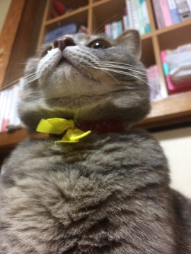 *ピンクの首輪に黄色のリボンが付いています。