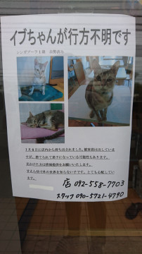 店から連れ拐われてしまいました。捨てられているかもしれません。被害届けだしています。探しています、心配です。