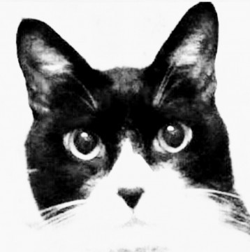 黒が多い白黒で尻尾は長め、体重は5キロの去勢済みの男の子です。鳴き声は高めです。