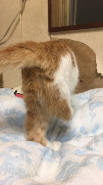 茶トラで尻尾は、長くストレートです。