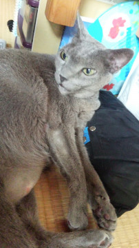 ロシアンブルー。首輪無し。去勢済み。