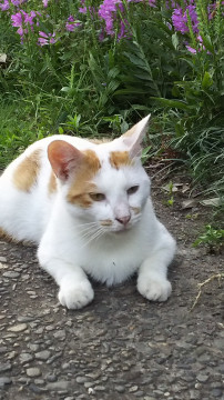 雄猫、去勢済み、紫の首輪、体重4.5㎏