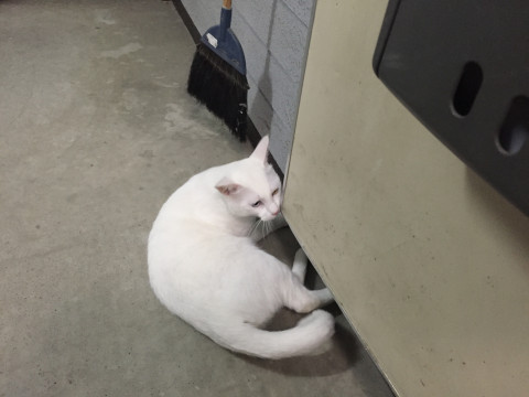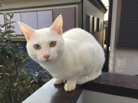 白猫のオッドアイです。耳がやや大きく、しっぽが長め