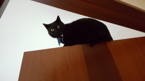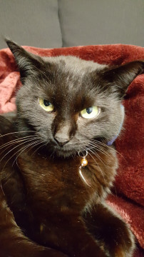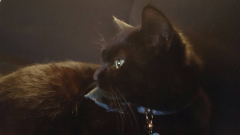 黒猫で、避妊手術後のためお腹の毛は、ほぼありません。