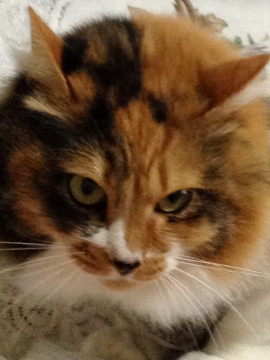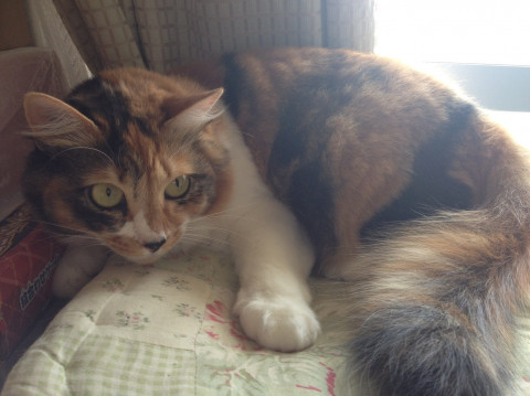 女の子三毛猫、避妊手術済み、ぽっちゃり体型、人抱かれるのは嫌がります。