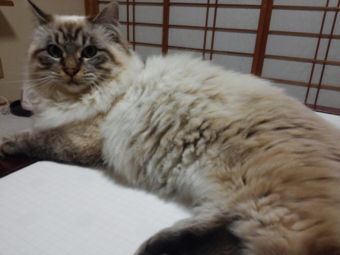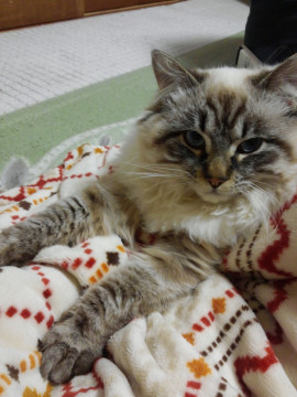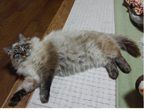 ★長毛で尻尾が太く毛の色はシャム猫風