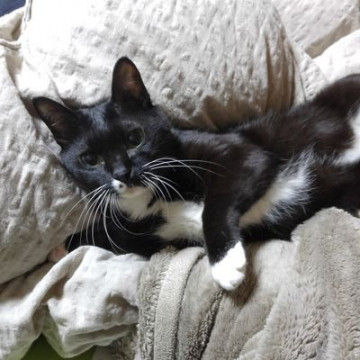 黒猫 足先白 かぎしっぽ 鼻の右下にホクロのようなもよう