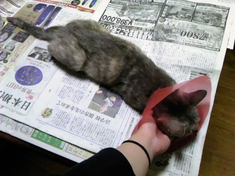・画像1枚目のように透明のエリザベスカラーを付けています