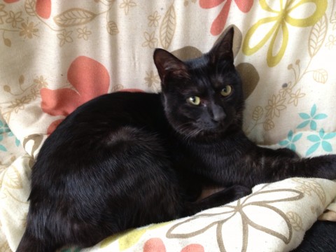 黒猫で首のあたりは白い 短毛 細身で小柄