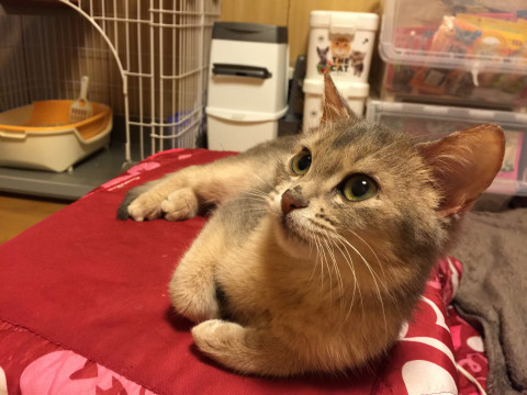 アビシニアンにしては耳が余り大きくなくて小さいほうだと思います。