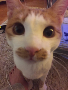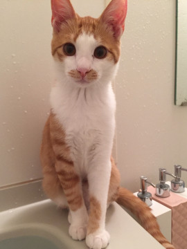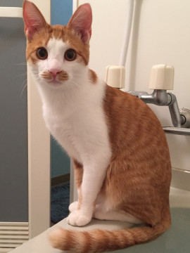 茶トラ白・シッポが長くシマシマ・人懐こい・元気が良くいっぱい鳴きます