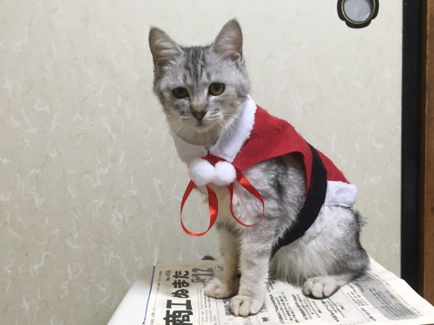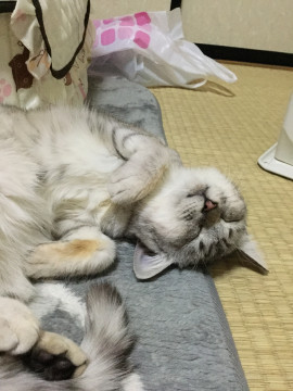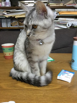 サバトラの小柄で尻尾の毛にぼりゅうむがあります。